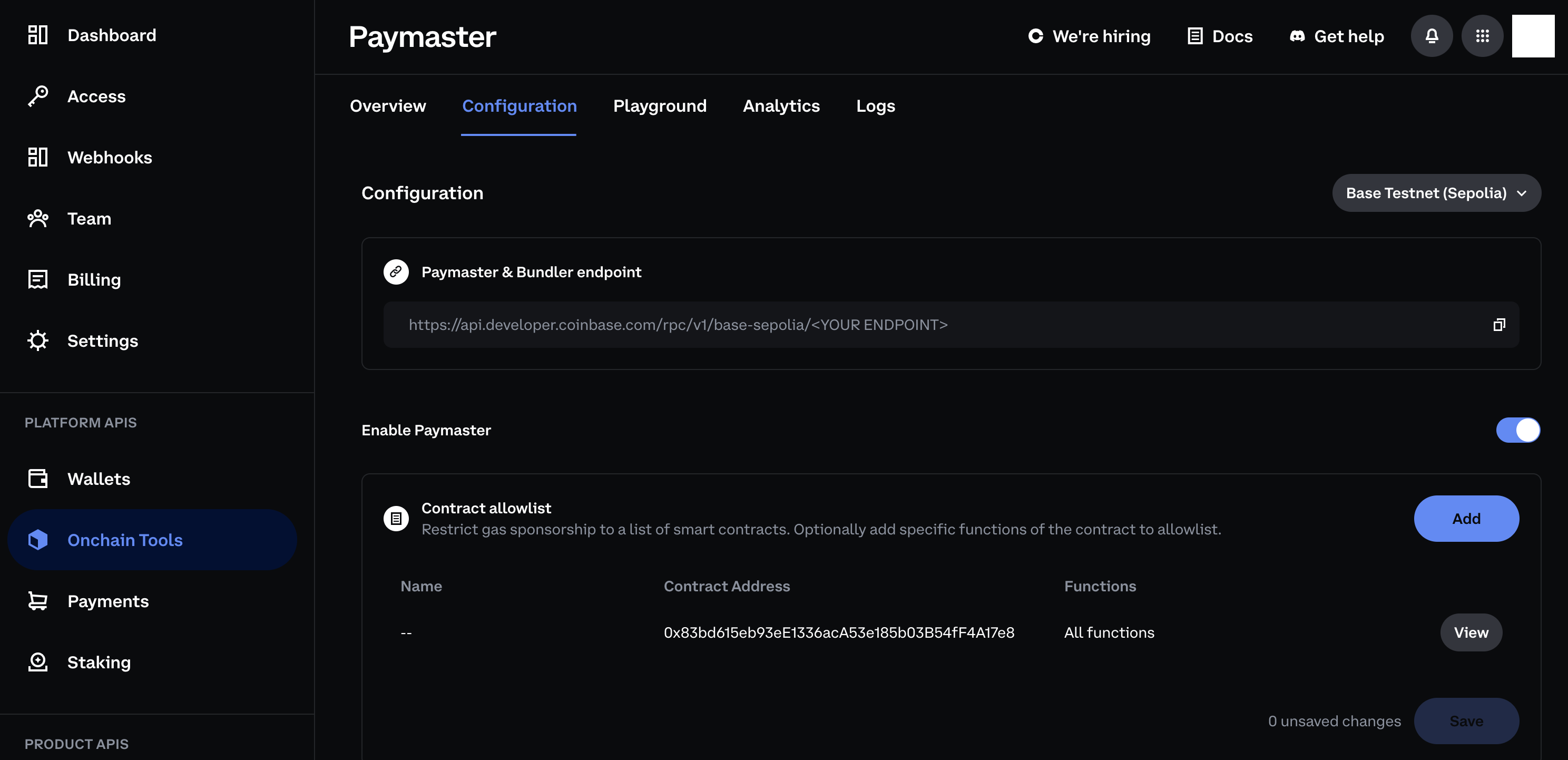 Add the following address to the allowlist under Configuration—this is the address of the contract we are calling:
